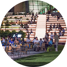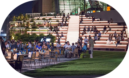 昼と夜で表情の異なるこの場所で、自分にぴったりの心地よさを見つけにきてください。さぁ、水と緑の心地よさをたずさえて、みんなで一緒につぎの豊かさを生み出そう。